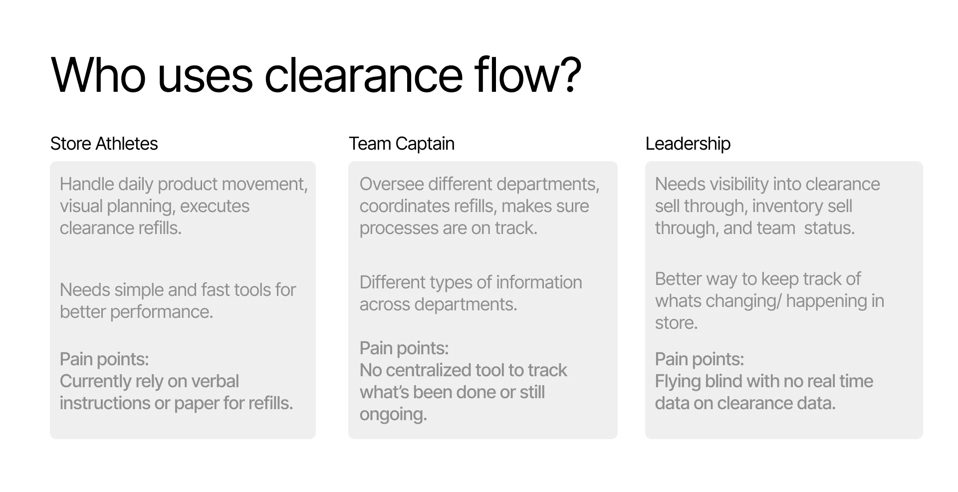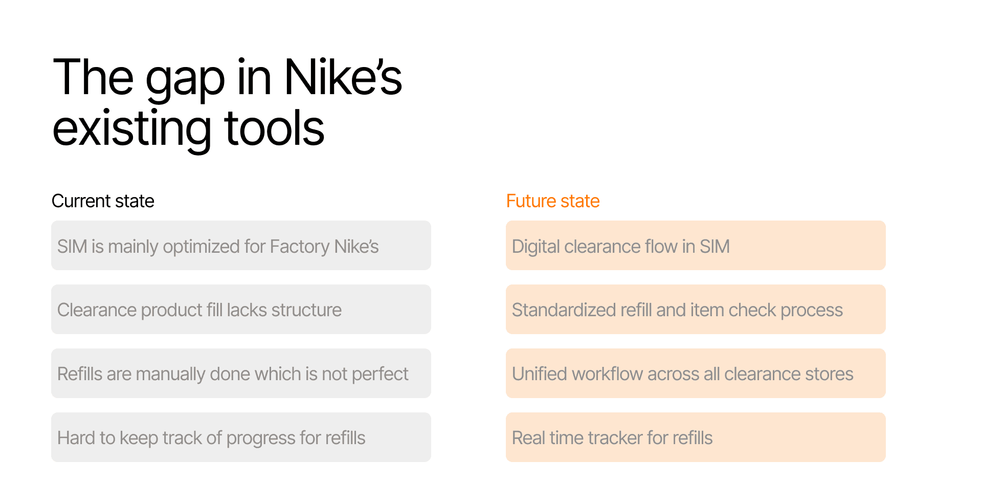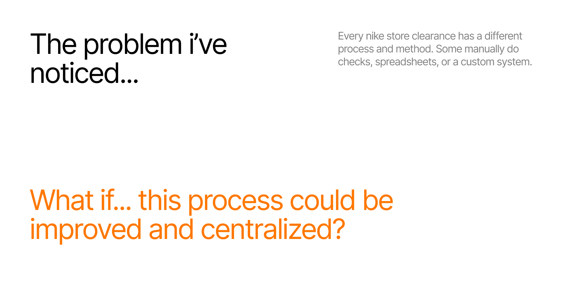 A concept expansion of Nike's internal operations tool, built to standardize how clearance stores handle product flow. Designed from the floor up by someone who actually worked it.